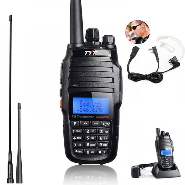 Πλήρες σετ ασύρματης επικοινωνίας. Αυτός ο ισχυρός, ασύρματος πομποδέκτης 10w δύο δρόμων Dual Band έρχεται μαζί με 2 κεραίες, βάση φόρτιση και ενσύρματα ακουστικά Handsfree Σιλικόνης σπιράλ.