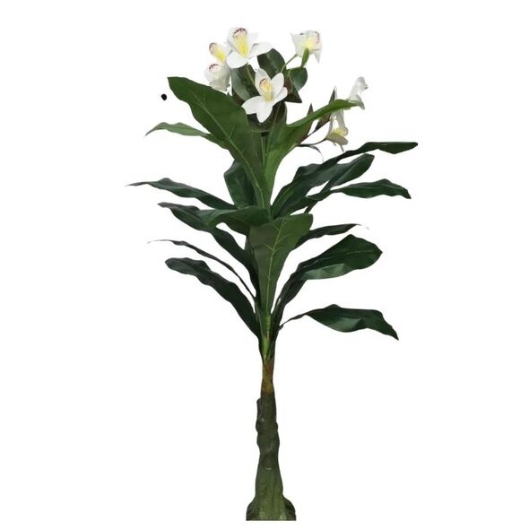 Εντυπωσιακό τεχνητό φυτό με λουλούδια ορχιδέας 150 cm, με πλούσιο φύλλωμα και φυσικό κορμό. Ιδανικός για σαλόνια, γραφεία και επαγγελματικούς χώρους. Πάντα πράσινος, χωρίς ανάγκη φροντίδας.
