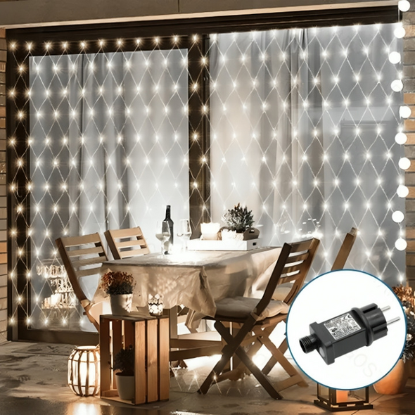 1,5x1,5m Χριστουγεννιάτικα Λαμπάκια Ρεύματος - Δίχτυ με Λευκό Ψυχρό Φωτισμό, 8 Προγράμματα Λειτουργίας και Διάφανο Καλώδιο - AIGOSTAR