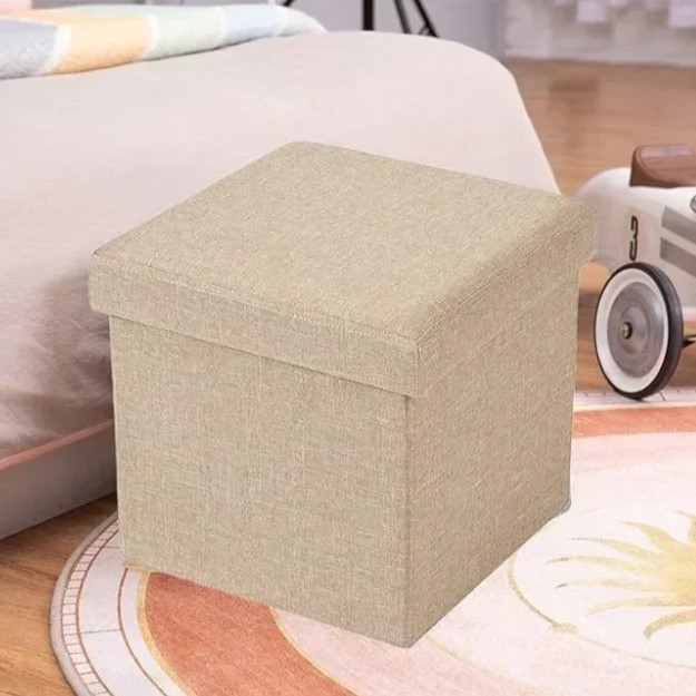 2 σε 1 Αναδιπλούμενο Σκαμπό - Κουτί Αποθήκευσης με Υφασμάτινη Επένδυση - 30 x 30 x 30 cm Μπεζ