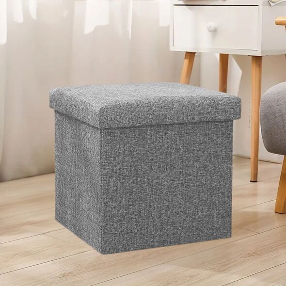 2 σε 1 Αναδιπλούμενο Σκαμπό - Κουτί Αποθήκευσης με Υφασμάτινη Επένδυση - 38 x 38 x 35 cm