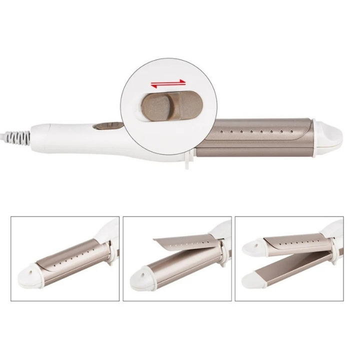 - Λειτουργίες: Ίσιωμα & μπούκλες, χρήση σε στεγνά ή νωπά μαλλιά, διακόπτης ON/OFF, κλείδωμα ασφαλείας