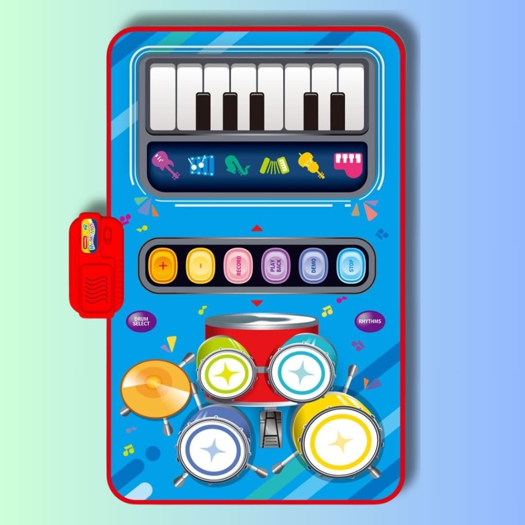 Το 2 σε 1 Μουσικό Χαλί Παιχνιδιού είναι ένας συναρπαστικός τρόπος για τα παιδιά να εξερευνήσουν τη μουσική και τον ρυθμό, συνδυάζοντας ένα ηλεκτρονικό πιάνο και ένα σετ ντραμς σε μια μαλακή, ασφαλή επιφάνεια.