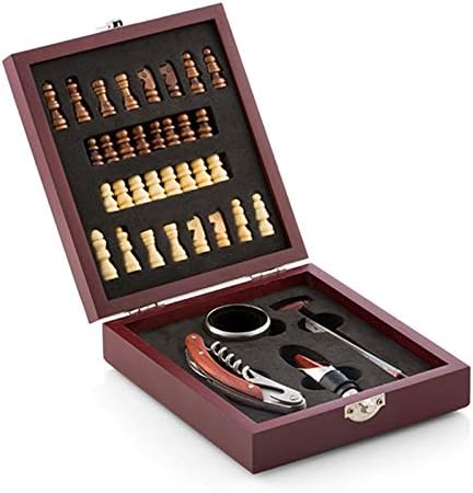 Το σετ συνδυάζει κλασικό παιχνίδι σκακιού με πρακτικά αξεσουάρ κρασιού, προσφέροντας μια κομψή και λειτουργική επιλογή τόσο για προσωπική χρήση όσο και για δώρο.
