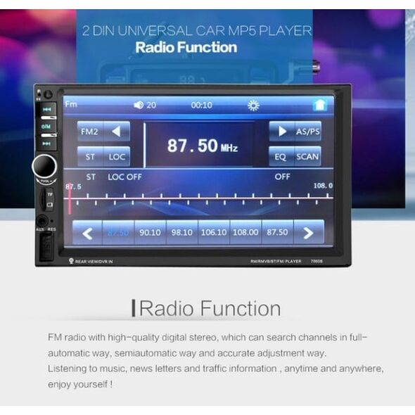 Τηλεχειριζόμενη ψηφιακή οθόνη αφής 2 din 7″ με USB 2.0, Micro SD / TF και AUX.