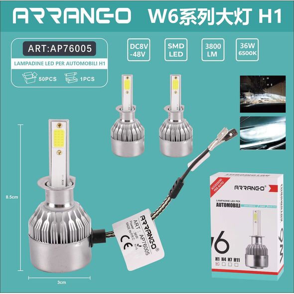 2x ARRANGO® Λαμπτήρες LED SMD Φώτα Πορείας H1 36W 6500K W6 3800Lm