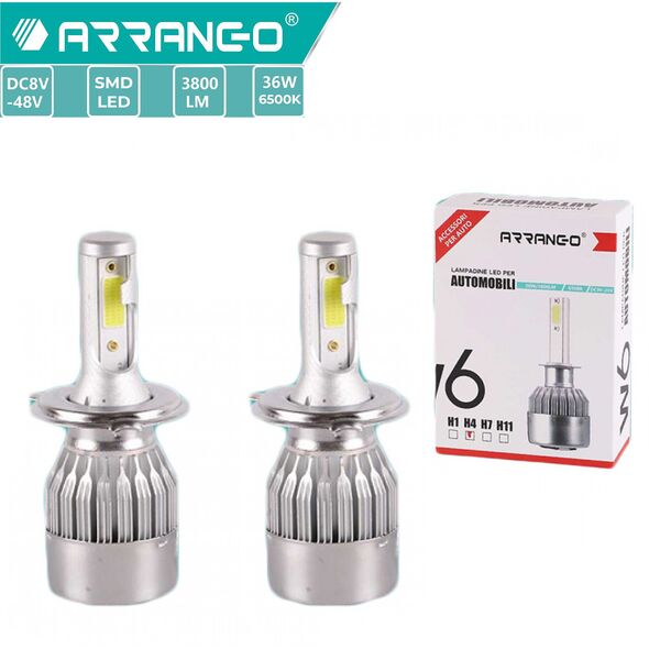 2x ARRANGO® Λαμπτήρες LED SMD Φώτα Πορείας H4 36W 6500K W6 3800Lm