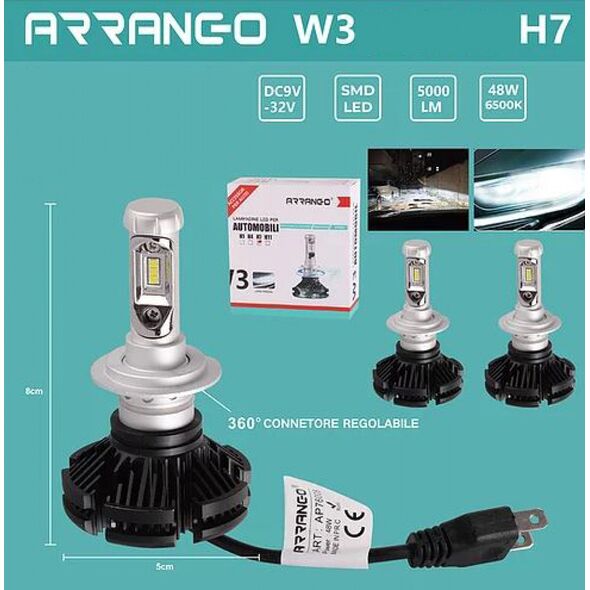 2x ARRANGO Λαμπτήρες LED SMD Φώτα Πορείας H7 48W 6500K W3 5000Lm
