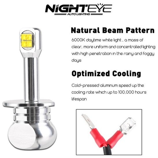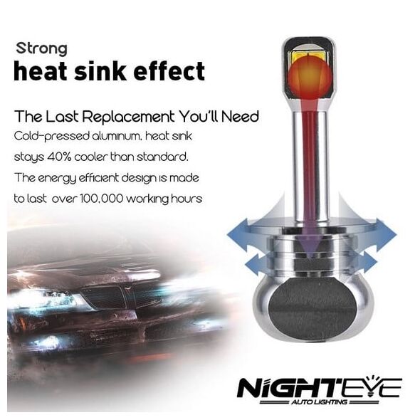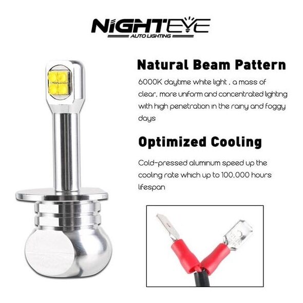 2x Nighteye Λαμπτήρες LED Φώτα Πορείας H1 80W 3000Lm 6000K A334 - A18