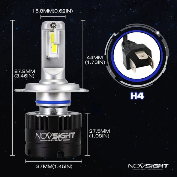 2x NOVSIGHT® Aδιάβροχοι Λαμπτήρες LED H4 Φώτα Πορείας Λευκού Φωτισμού 360° 80W 14400LM 5500K A500 N16