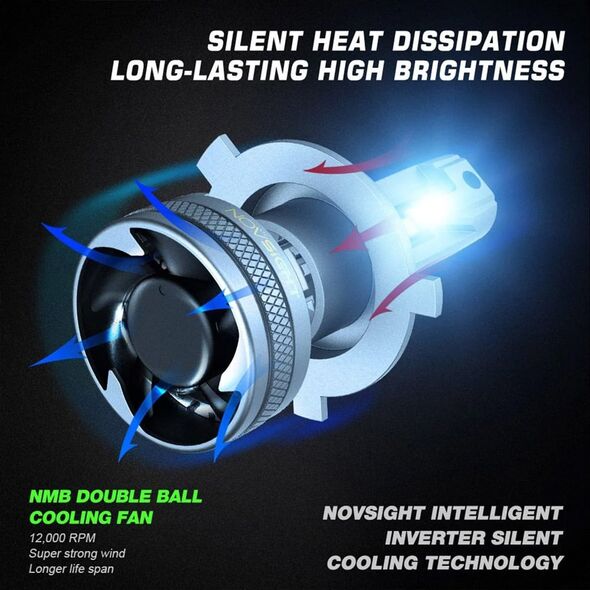 2x Novsight Λαμπτήρες LED Φώτα Πορείας Αυτοκινήτου 12/24V H4 120W (2x60W) 22000LM 6500K IP68 A500 N37