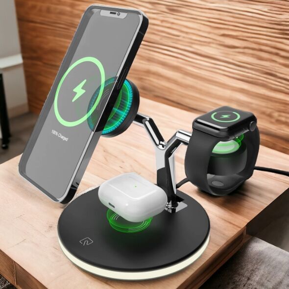 Με τη λειτουργικότητά του 3 σε 1, μπορείτε να φορτίζετε ταυτόχρονα το smartphone σας (συμβατό με όλα τα smartphones που υποστηρίζουν μαγνητική φόρτιση), το Apple Watch και τα AirPods με ευκολία.