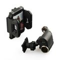 - Βάση αυτοκινήτου φορτιστής με ανοιγόμενα και ρυθμιζόμενα πτερύγια, μετακινούμενα ποδαράκια στήριξης που βιδώνουν στην επιθυμητή θέση (έτσι ώστε να χωρά αλλά και να στερεώνεται σταθερά το καλώδιο φόρτισης) + κουμπί απεμπλοκής πτερυγίων.