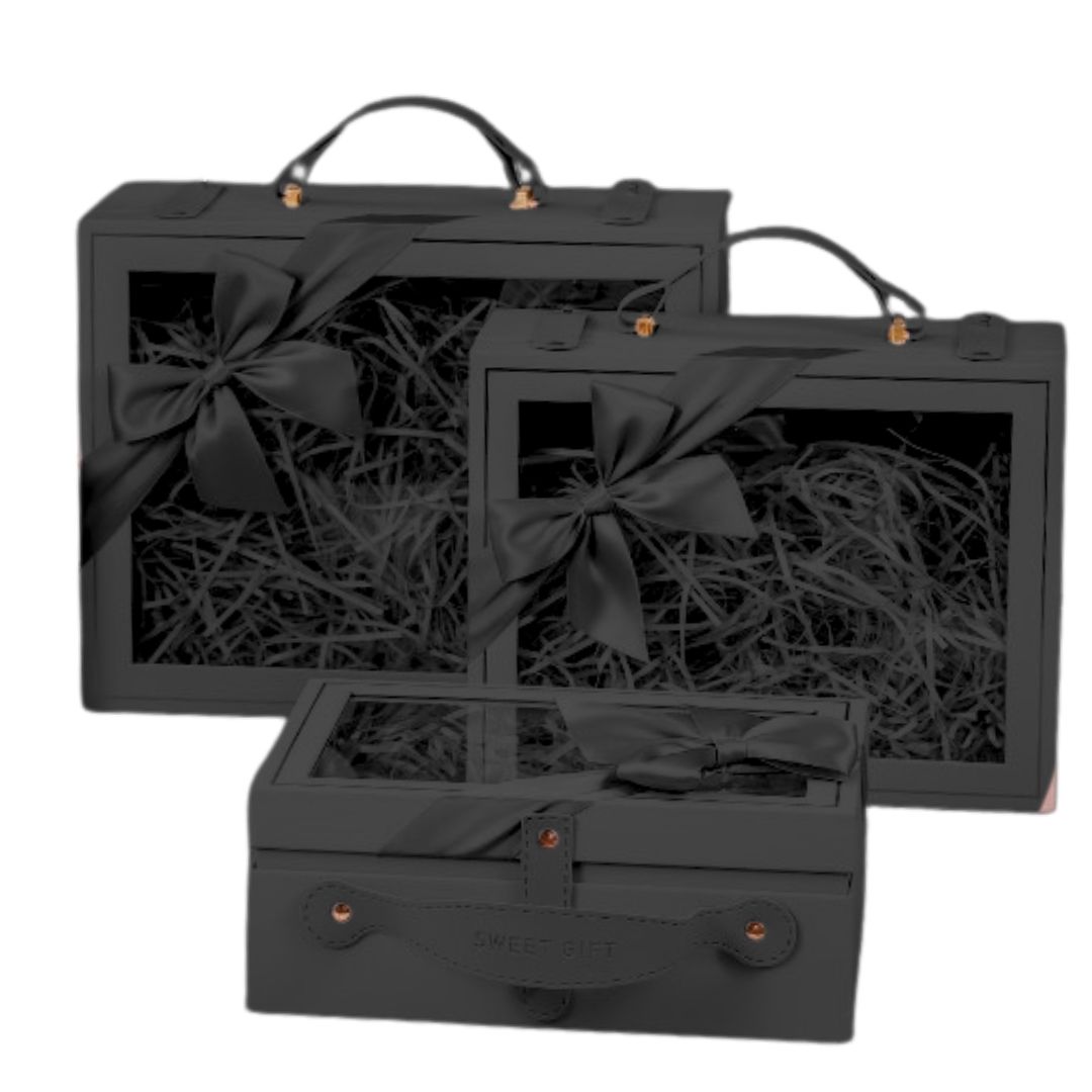3 τμχ Σετ Κουτιά Δώρου Πολυτελείας με Λαβή & Κορδέλα - Μαύρο