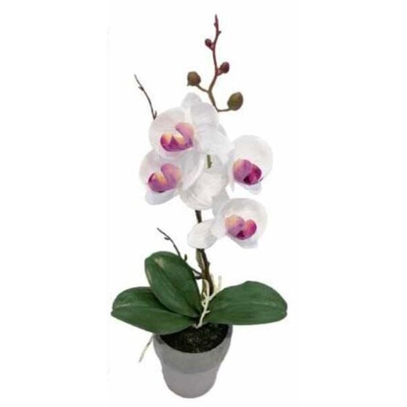 35.5cm Τεχνητή Διακοσμητική Λευκή Ορχιδέα σε Γλάστρα