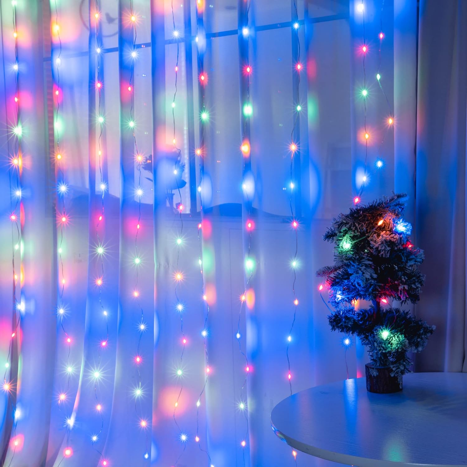 3x3m Χριστουγεννιάτικα Λαμπάκια Ρεύματος - Κουρτίνα με Πολύχρωμο RGBY Φωτισμό, 8 Προγράμματα Λειτουργίας και Διάφανο Καλώδιο - AIGOSTAR