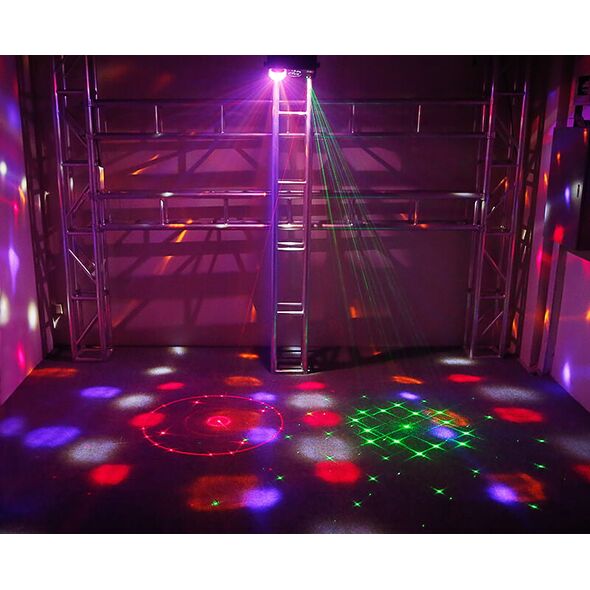 Το απόλυτο αυτό Combo φωτορυθμικό - πλήρες σετ πακέτο φωτισμού, θα δημιουργήσει πληθώρα εκπληκτικών φωτιστικών effect, καθηλώνοντας του πάντες. Ενσωματώνει υπέρ-δυνατό Laser red & green, Spot Gobo Led, Πολύχρωμα Beam Led effects και Strobe, 4 σε 1!