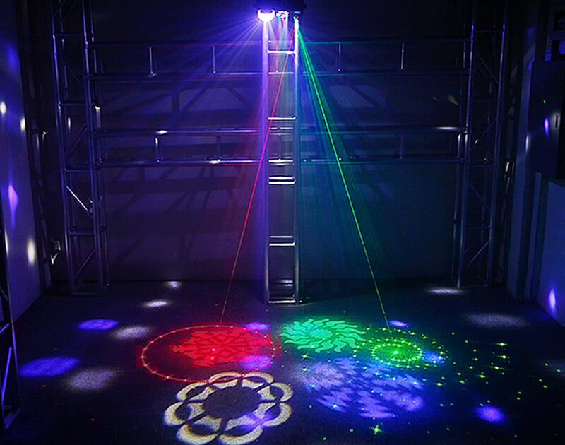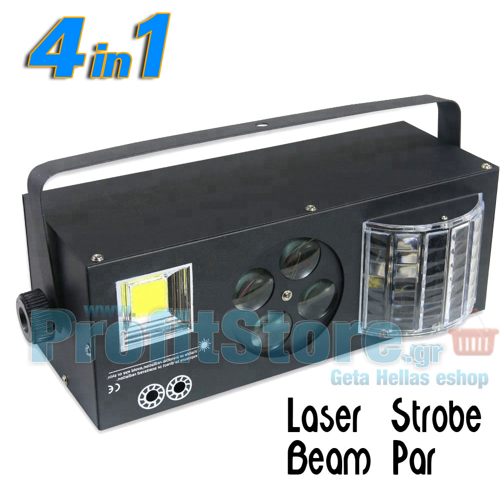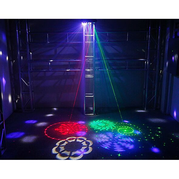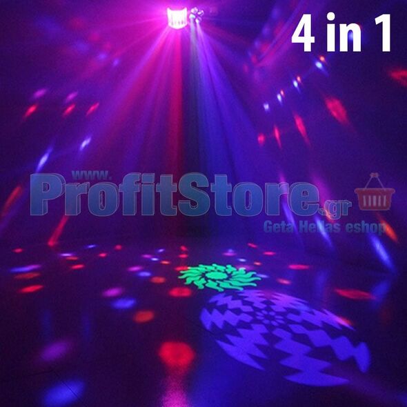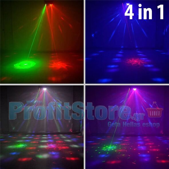 Το απόλυτο αυτό Combo φωτορυθμικό - πλήρες σετ πακέτο φωτισμού, θα δημιουργήσει πληθώρα εκπληκτικών φωτιστικών effect, καθηλώνοντας του πάντες. Ενσωματώνει υπέρ-δυνατό Laser red & green, Spot Gobo Led, Πολύχρωμα Beam Led effects και Strobe, 4 σε 1!