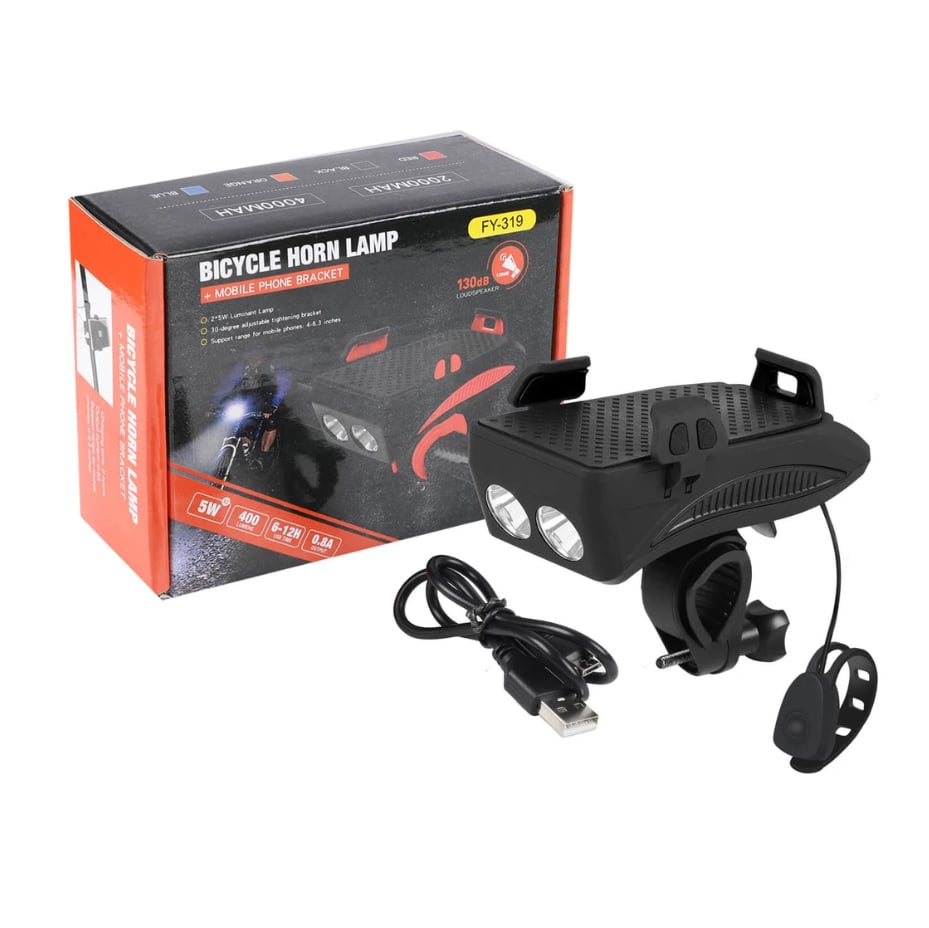 4 σε 1 Βάση Κινητού για Ποδήλατο - με Φακό - Κόρνα- Φώς και Powerbank FY-319