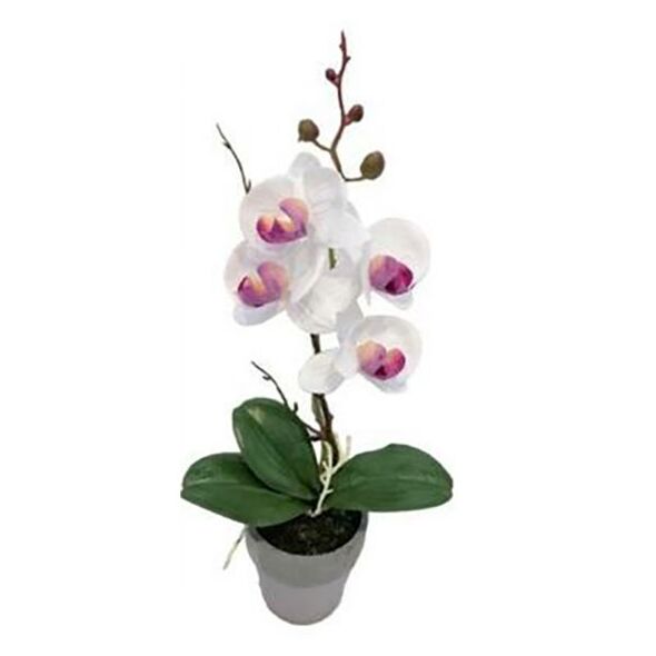 47cm Τεχνητή Διακοσμητική Λευκή Ορχιδέα σε Γλάστρα