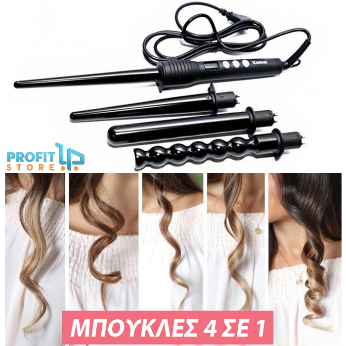 4Curls Τετραπλή Μπουκλωτική - Wavy, Soft, Beach Hair Curls Ψαλίδι - Σίδερο Μαλλιών για 4 Διαφορετικές Μπούκλες Pro 4 σε 1
