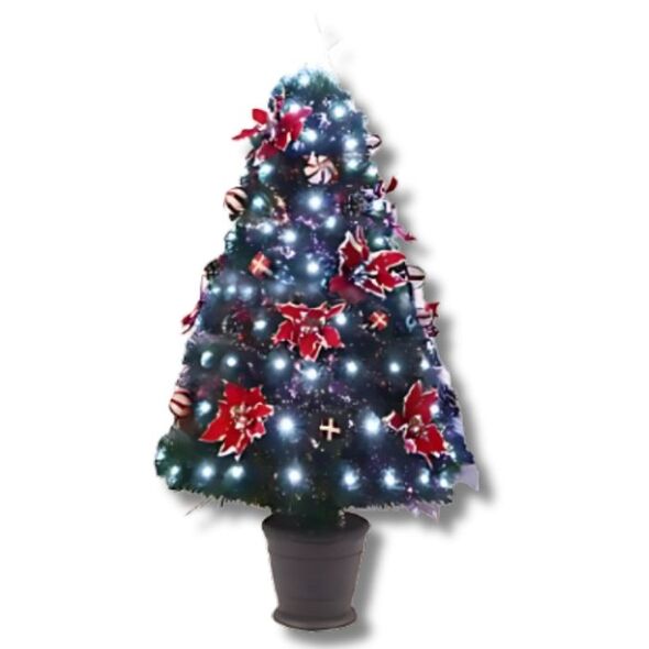 Φέρτε τη μαγεία των Χριστουγέννων στο σπίτι σας με αυτό το εντυπωσιακό τεχνητό Χριστουγεννιάτικο δέντρο ύψους 60cm, στολισμένο με φωτεινά LED ψυχρού λευκού χρώματος και κόκκινα διακοσμητικά λουλούδια .