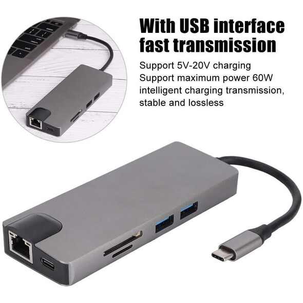 Με οχτώ διαφορετικές θύρες είναι η τέλεια λύση -όλα σε 1- για τη σύνδεση φορητού υπολογιστή από την θύρα USB Type-C.