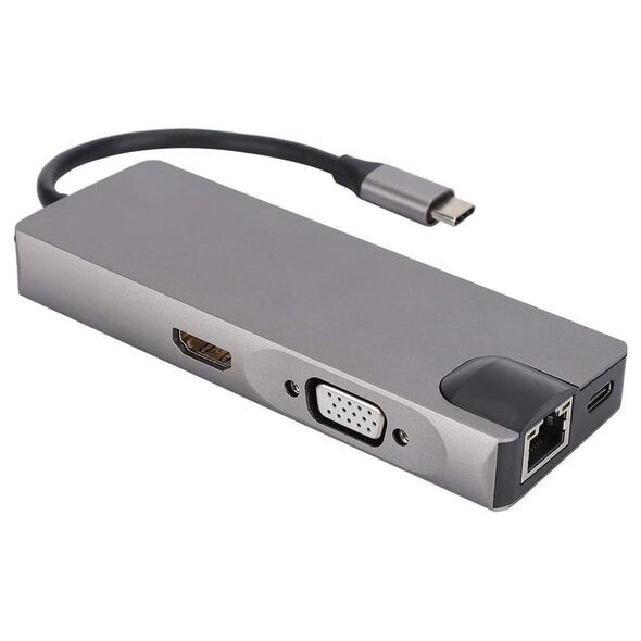 8 σε 1 USB-C Docking Station - Αντάπτορας με Θύρες HDMI 4K, Ethernet, USB 3, SD, VGA & Type-C