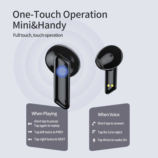 Με πλήκτρα χειρισμού αφής σε κάθε ακουστικό ( αποδοχή / απόρριψη κλήσεων, next/prev song, pause / play )