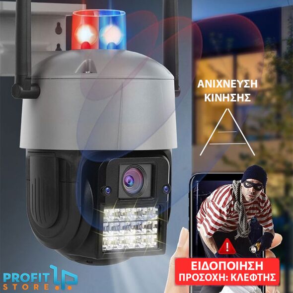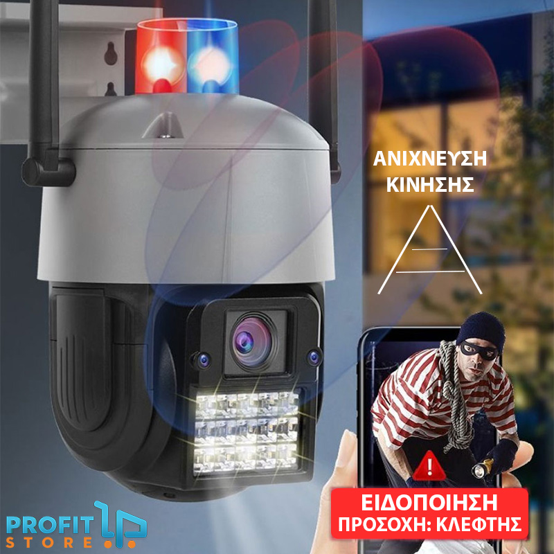 Αδιάβροχη Ασύρματη IP WiFi Κάμερα 1080p με LED Φάρο & Συναγερμό 3MP, PTZ Dome 355°, Νυχτερινή Λήψη, Ανίχνευση Κίνησης, Ειδοποίηση στο Κινητό Mic & Ηχείο