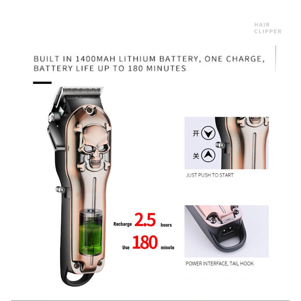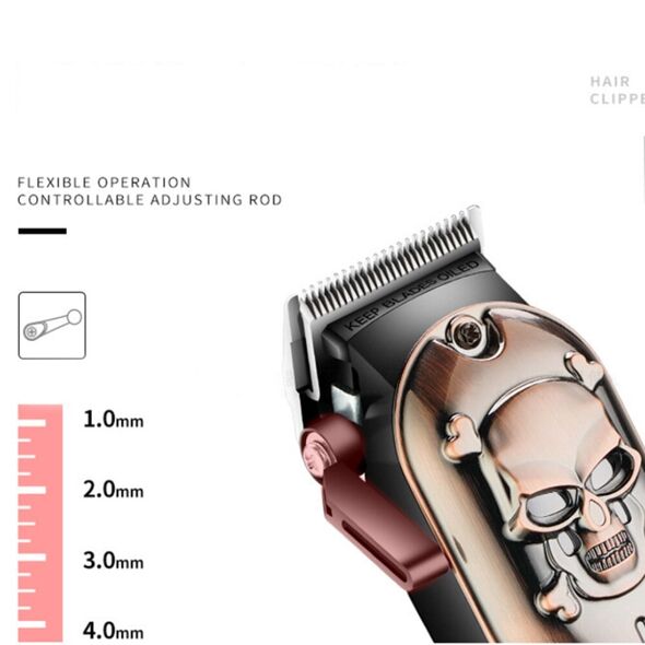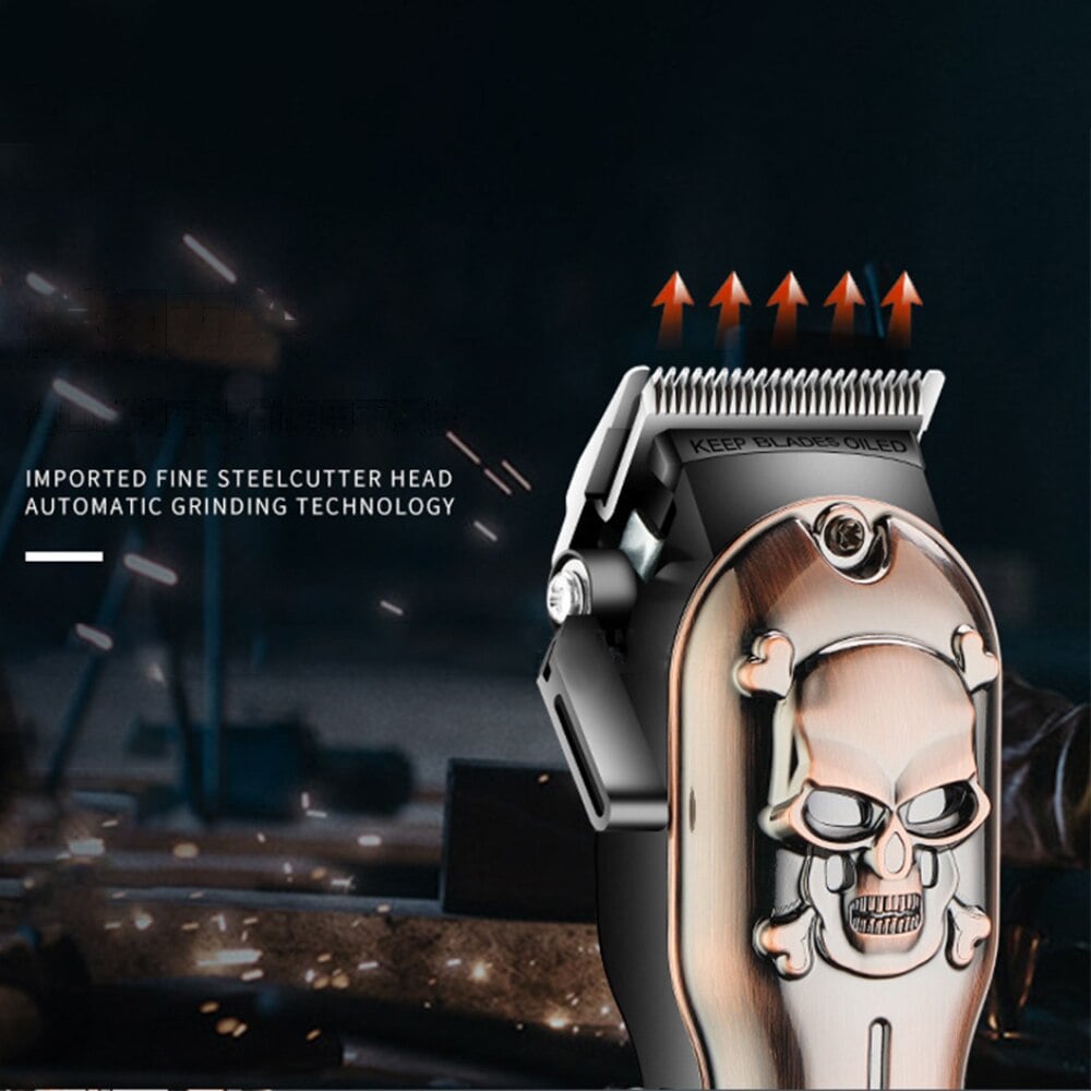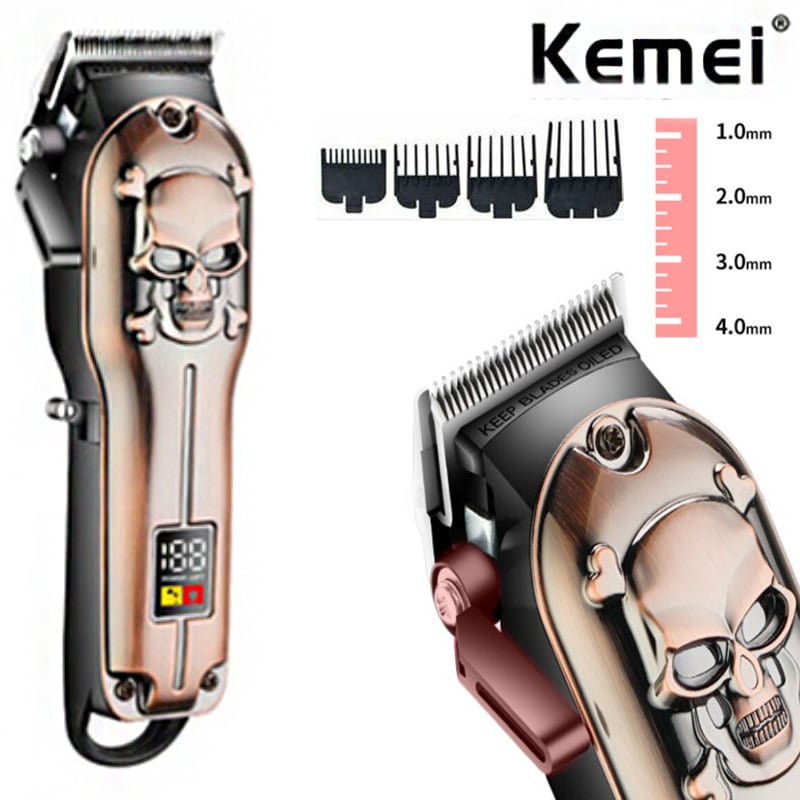 Αδιάβροχη Επαγγελματική Επαναφορτιζόμενη Κουρευτική & Ξυριστική Μηχανή - Trimmer KEMEI με Μπαταρία - Σχέδιο Skull / Νεκροκεφαλή