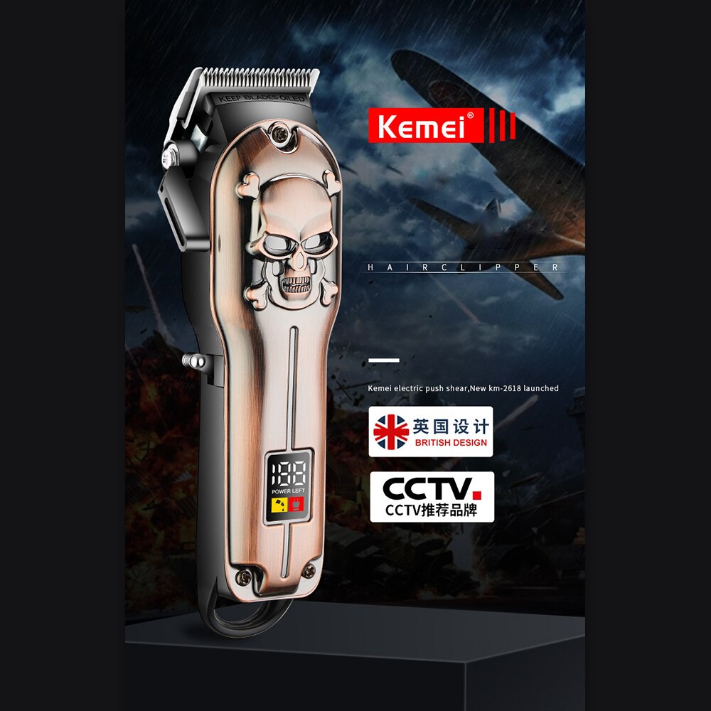 Αδιάβροχη Επαγγελματική Επαναφορτιζόμενη Κουρευτική & Ξυριστική Μηχανή - Trimmer KEMEI με Μπαταρία - Σχέδιο Skull / Νεκροκεφαλή