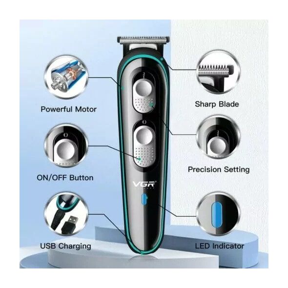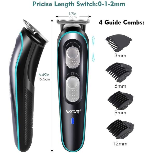 Η Κουρευτική & Ξυριστική μηχανή - Trimmer για μαλλιά, γένια και σώμα της VGR, με αποσπώμενες λεπίδες από ανοξείδωτο χάλυβα, προσφέρει απόλυτη ακρίβεια, ασφάλεια και έλεγχο στο κούρεμά σας.