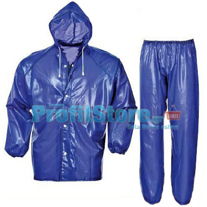 Φόρμα αδιάβροχη σετ δυο τεμαχίων. (Παντελόνι, μπουφάν). Ιδανική λύση για μοτοσικλετιστές - αγρότες - ορειβάτες - πεζοπόρους κλπ. Κατασκευασμένη από ανθεκτικό πλαστικό για πλήρη αδιαβροχοποίηση. Σχεδιασμένη με τρόπο που να επιτρέπει άνεση κινήσεων.
