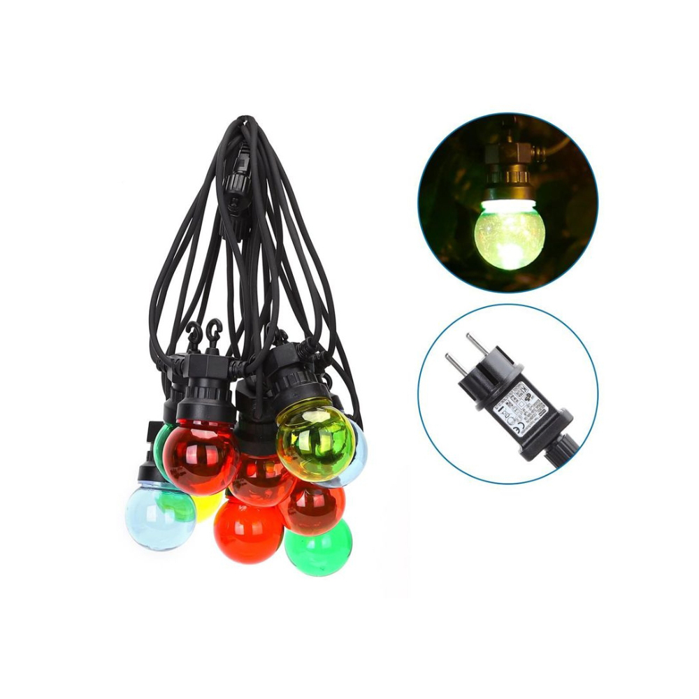Αδιάβροχη Γιρλάντα Με 10 Πολύχρωμες Διακοσμητικές Χριστουγεννιάτικες Λάμπες LED 8μ 6w Ντίζα - Led Garland 10x Bulbs Outdoor Christmas Lights