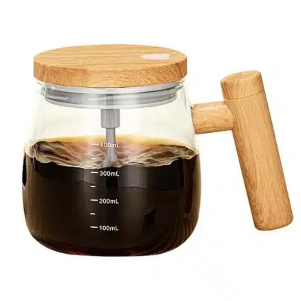 Αδιάβροχη Γυάλινη Κούπα που Ανακατεύεται Μόνη της με Ξύλινο Καπάκι και Λαβή 400ml Home Theory