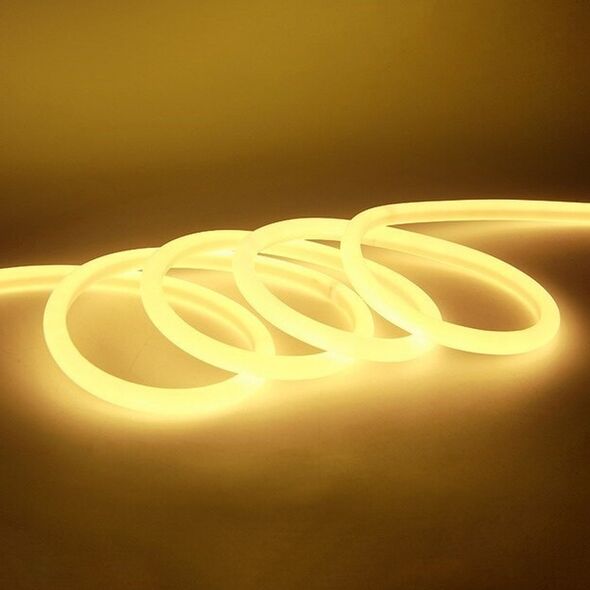 Η αδιάβροχη ταινία LED Neon Flex 12V με θερμό λευκό φως είναι ιδανική για τη δημιουργία εντυπωσιακού και ανθεκτικού φωτισμού σε εσωτερικούς και εξωτερικούς χώρους.