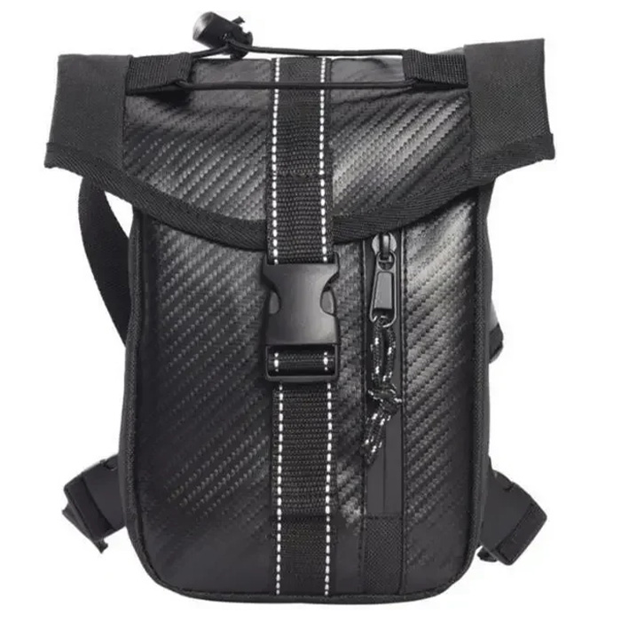 Αδιάβροχη Τσάντα Μέσης - Ποδιού για Μοτοσυκλέτα με Ιμάντα και Θήκες Carbon Μαύρη