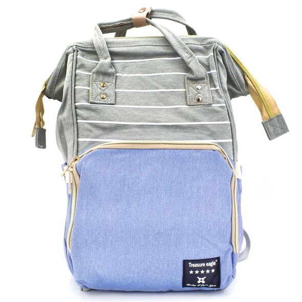 Αδιάβροχη Τσάντα Μωρού Πλάτης με 3 Θήκες Μπιμπερό Mommy Bag AiFi - Σακίδιο Backpack Γαλάζιο, Γκρι Ριγέ