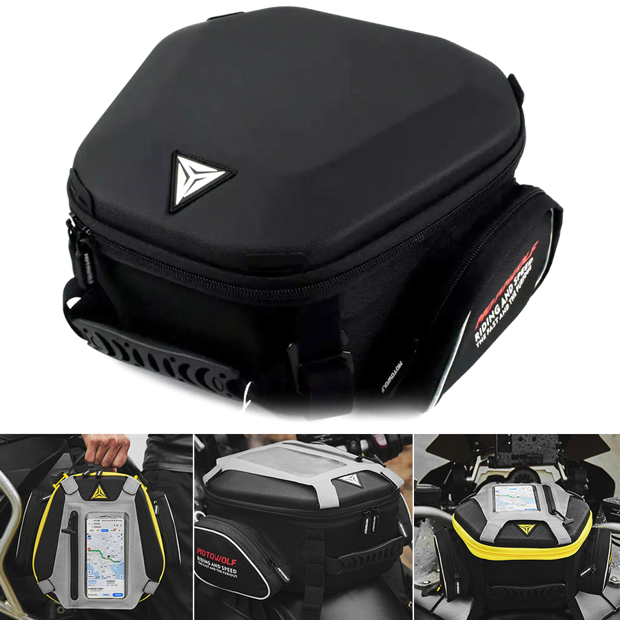 Μια λειτουργική τσάντα για το ρεζερβουάρ της μηχανής σας, με μεγάλη χωρητικότητα και ειδική αδιάβροχη διάφανη θήκη αφής για το κινητό σας. Ιδανική για να βλέπετε τις οδηγίες πλοήγησης στο GPS.