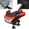 Αδιάβροχη USB Επαναφορτιζόμενη Βάση Κινητού Powerbank, Κόρνα & Φως Πορείας - Φακός LED 800lm Ποδηλάτου - LED Bicycle Horn Lamp Κόκκινο