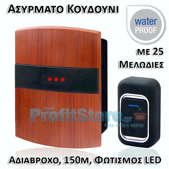 Αδιάβροχο Ασύρματο Κουδούνι Εμβέλειας 150μ με Ρυθμιζόμενη Ένταση, Φωτισμό & 25 Μελωδίες LUCKARM-3901