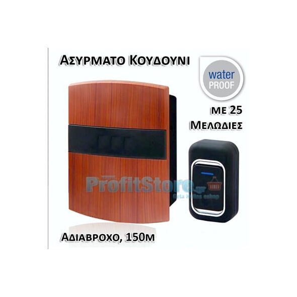 Αδιάβροχο Ασύρματο Κουδούνι Εμβέλειας 150μ με Ρυθμιζόμενη Ένταση & 25 Μελωδίες LUCKARM-3902