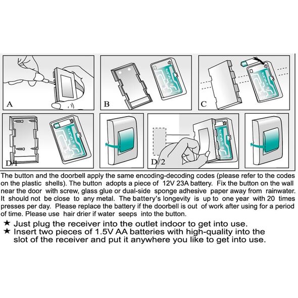 - Η μπαταρία του πομπού περιλαμβάνεται στην συσκευασία και έχει αυτονομία ενός χρόνου τουλάχιστον με 20 κουδουνίσματα τη μέρα.