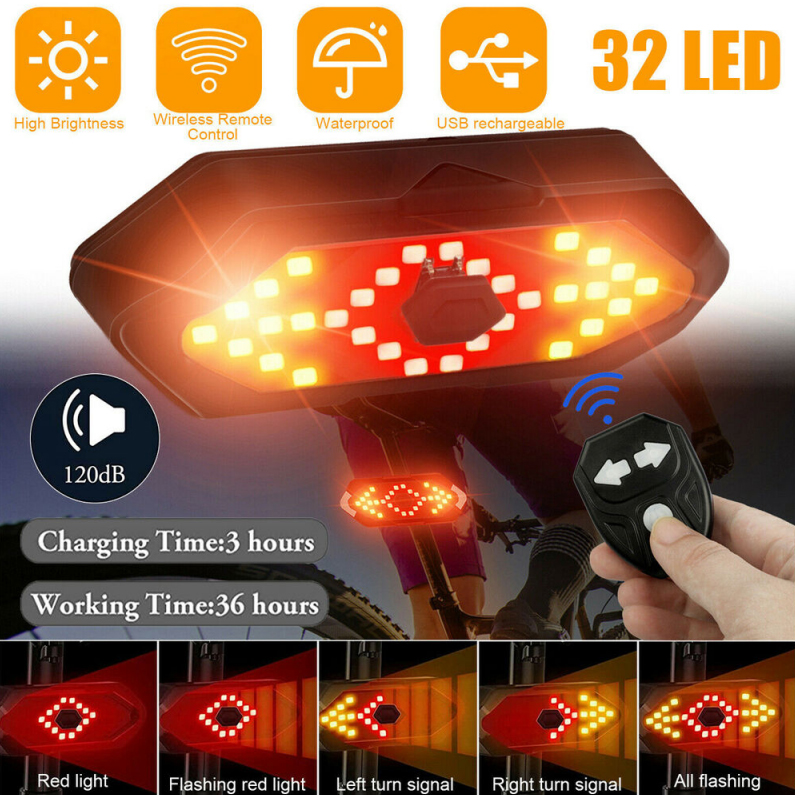 Αδιάβροχο Ασύρματο Οπίσθιο Φως & Φλας Ποδηλάτου 32 LED με Τηλεχειριστήριο, 5 Λειτουργίες Φωτισμού & Κόρνα 120dB USB Επαναφορτιζόμενο