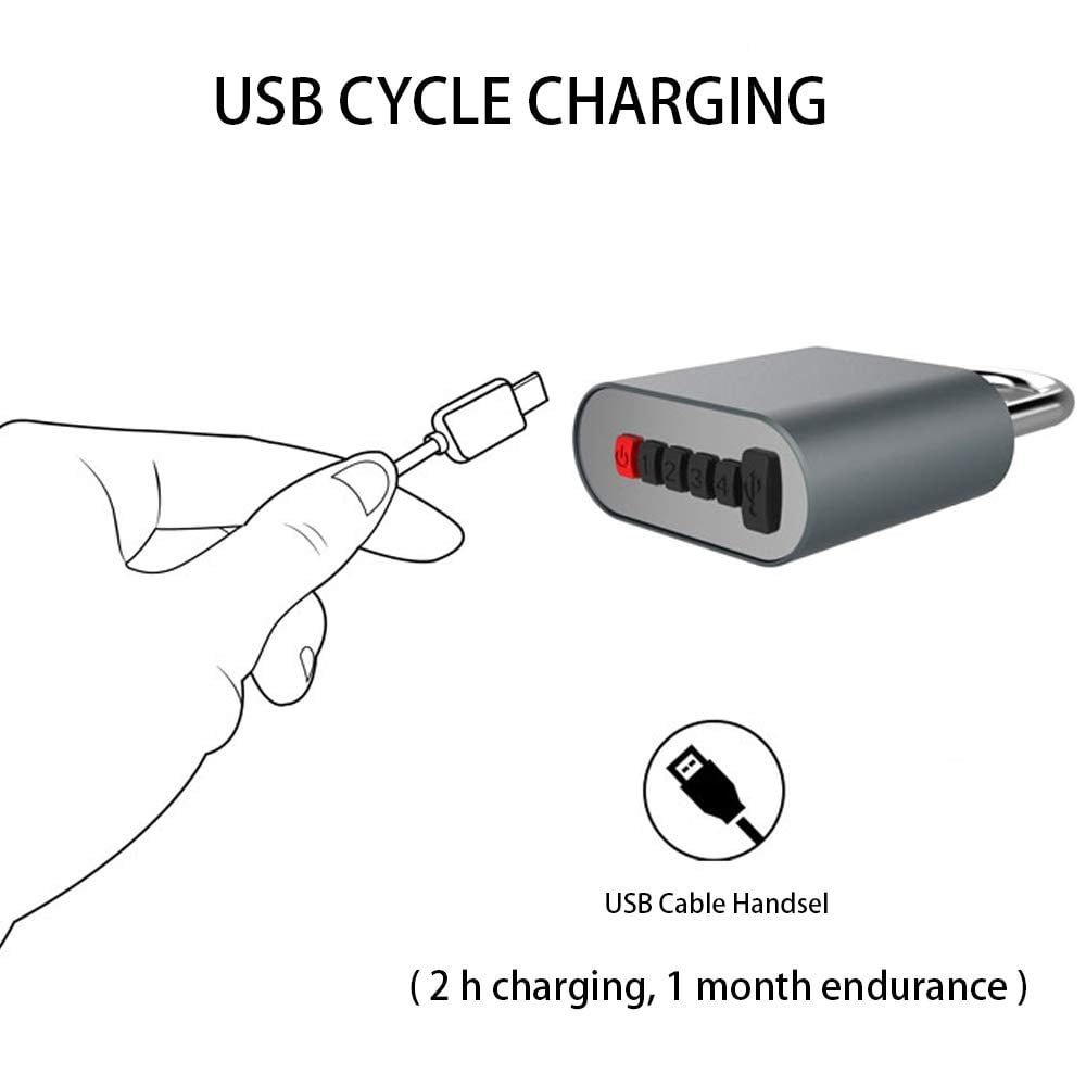 Στο κάτω μέρος του, το λουκέτο διαθέτει 5 αδιάβροχα κουμπιά. Τέσσερα που αντιστοιχούν στους αριθμούς 1 - 2 - 3 - 4 για να το ξεκλειδώνετε μέσω του κωδικού που εσείς θα θέσετε από το κινητό σας. Ένα κουμπί ενεργοποίησης/απενεργοποίησης και μια αδιάβροχη θύρα φόρτισης