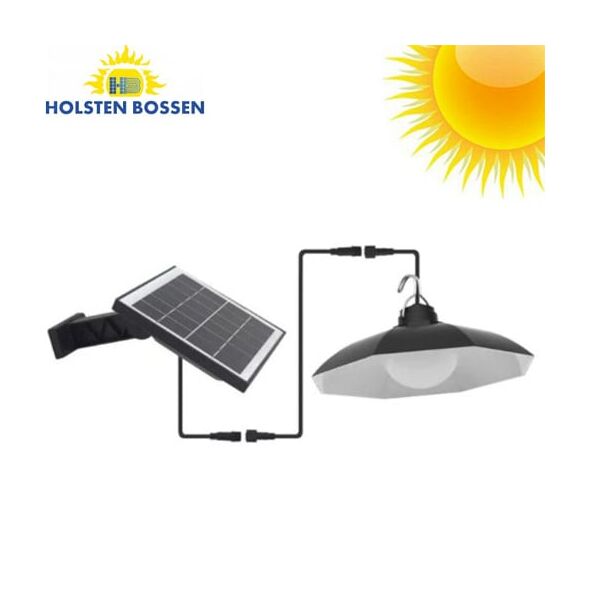 Καινοτόμο κρεμαστό ηλιακό φωτιστικό με την εγγύηση ποιότητας της Holsten Bossen®, που συγκεντρώνει και αποθηκεύει ηλιακή ενέργεια για τη λειτουργία του, ώστε να μη χρειάζεται να συνδεθεί σε παροχή ρεύματος.