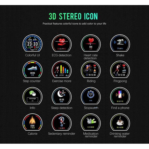 Αδιάβροχο Ρολόι SmartWatch με Ζωντανό Καρδιογράφημα - Μέτρηση Παλμών, Βημάτων, Θερμίδων, Πιεσόμετρο, Ύπνου & Αθλητικές Δραστηριότητες Activity Fitness Tracker