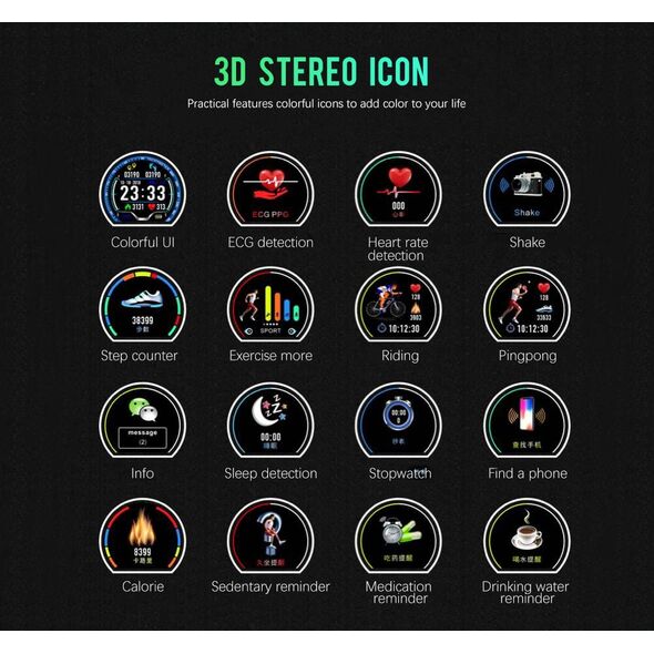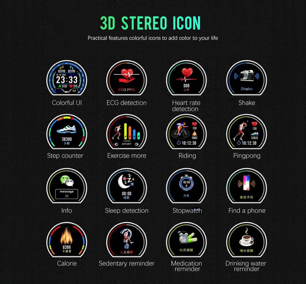 Αδιάβροχο Ρολόι SmartWatch με Ζωντανό Καρδιογράφημα - Μέτρηση Παλμών, Βημάτων, Θερμίδων, Πιεσόμετρο, Ύπνου & Αθλητικές Δραστηριότητες Activity Fitness Tracker