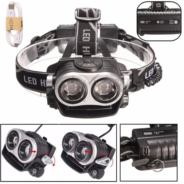 Αδιάβροχος Compact Φακός Κεφαλής Υψηλής Φωτεινότητας Διπλής Εστίασης DUAL ZOOM